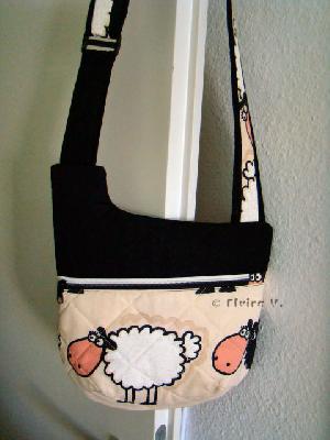 Nun ergab es sich, dass eine Blofreundin Schafe sehr gerne mag - allerdings in Natura. Nichtdestrotrotz nähte ich ihr nach dem bekannten Schema eine kleine Tasche. Morgen geht sie in die Post!