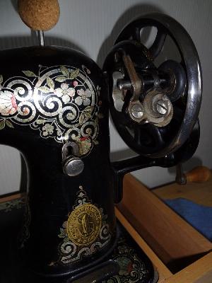 Ich habe mich jetzt im www schlau gemacht. Sie ist von 1908!!! Ursprünglich eine Tischmaschine aber irgendjemand hat dann in liebevoller Arbeit den "Kasten" mit abnehmbarem Anschiebetisch rundherum gebaut. Wahrscheinlich kann ich sie deswegen gar nicht benutzen, oder? Ausser mit dem Handrad aber ich find sie sooo schön. Ich habe schon mehr Geld für Dekoartikel ausgegeben....