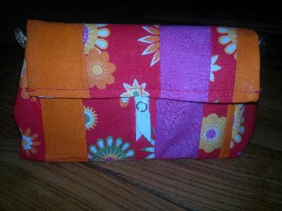 Anbei ein Foto, was sozusagen entstanden ist, nachdem ich mir mal Gedanken über ein Schminktäschchen gemacht habe. Ich habe keine Vorlage genutzt, mir selber eine gezeichnet und sie aus Streifen zusammengenäht.