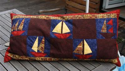 Die Schiffe sind nach der Papiermethode genäht und die Anordnung habe ich mir ausgedacht.Hatte nicht viele Möglichkeiten bei meiner Stoffmenge.