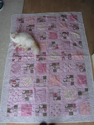 Grade nähe ich an einer weiteren Decke. Leider passt die Decke nicht mehr durch meinen Nähmaschinenarm, und so darf ich jetzt mit der Hand quilten