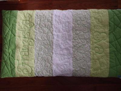 heute zeige ich Euch mein soeben fertiggestelltes Weihnachtsgeschenk für zwei ganz liebe Mädels. Eine davon ist mein Patenkind, die andere ihre Schwester. Sie bekommen zu Weihnachten von ihren Eltern eine neue Kinderzimmereinrichtung und ich durfte Deko dazu nähen. Sprich ein Sitzkissen. Die Vorraussetzungen, die mir dazu von der Mutter gegeben wurden: Größe 50x90cm, Streifen in grün und weiß, vielleicht die Namen drauf UND "ich soll mich nicht verkünsteln".... die ersten drei Dinge, habe ich glaube ich gut hinbekommen... aber wenn das PW-Muster schon so einfach ist, dann MUSS doch ein schönes Quiltmuster drauf.... Gefüllt ist das Ganze mit einem Dinkelspelz-Kassetten-Inlett. So aber nun dazu ein paar Bilder...