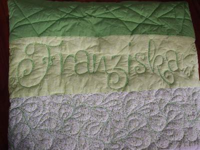 wunderschön gequiltet, vor allem die Namen, echt klasse. Da hast du dich ja wirklich "verkünstelt". Das wird den Mädels sicher gefallen. _________________ Gruß Bienenstich |