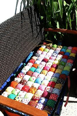 Meine Lütten sind für unsere Bank auf´m Balkon noch etwas zu kurz, sie brauchen eine Sitzerhöhung. Da habe ich wuemlis Biskuit Quilt gesehen und dachte "hey, das isses!"