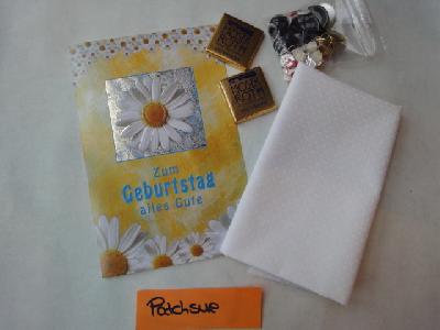 Es hat mir so viel Freude gemacht die Umschläge zu öffnen und die Stöffchen zu streicheln. Stell nachher nochmal ein Bild ein von allem mit meinem Planungstoff an den ihr Euch so super gehalten habt. Vielen Lieben Dank..Falls ich irgendein Bild falsch eingestellt habe, bitte Bescheid geben...