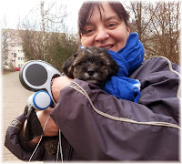 Und heute sind schon wieder diese komischen Tiere gekommen, nur habe ich das Gefühl das es etwas anders ist als sonst. Bei meinem Besuch bei denen zu hause, haben die mir ein Band um den Hals gemacht. Ich habe das nicht abbekommen so ein Mist. Mein Gefühl sollte mich nicht täuschen, nach einem ausgiebigen Spiel mit meinen Geschwistern und meiner Mutter hieß es abschied nehmen. Kurzerhand nahm mich eine auf den Arm die Tür ging auf und wir waren draußen. Jetzt hatte ich nicht nur das Band am Hals, ne jetzt kam auch noch eine Leine und ich konnte nicht dahin laufen wo ich hin wollte. So dachte ich mir, wartet, euch werde ich es zeigen, mal sehen wie die auf meine eingebaute Bremse reagieren. Was soll ich euch sagen das funktionierte nicht, schwups war ich wieder auf dem Arm. Ein Vorteil hat das ja auch, ich muss meine kurzen Beine nicht so anstrengen und warm ist es auf dem Arm auch.