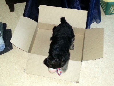 Als kleiner Welpe, habe ich es ja wirklich nicht leicht. So lange ich bei meinen Geschwistern war durfte ich alles vom raufen bis Kabel anbeißen. Meine Mamas haben gestern Morgen mit mir geschimpft. Sie finden es gar nicht witzig wenn ich mit den Strümpfen und der Unterwäsche abhaue und die in meinem Körbchen verstaue. Dabei duften die Sachen so frisch gewaschen viel zu gut und gar nichts duftet nach mir ... also muss ich doch meinen Duft da rein bringen.