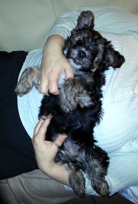Nun bin ich schon fast 10 Wochen (morgen ) alt und auch schon ein Stück gewachsen, bin schon ein Großer ... . Nur bei der Erziehung meiner Mamas hapert es, ich weis nicht was ich falsch mache. Anstatt dessen erziehen sie mich. Wenn sie mich gar zu arg ärgern, gibt es einfach eine Pfütze im Flur das haben sie gar nicht gern. Ich hätte zwar draußen genug Zeit mein Geschäftchen zu machen, habe aber keine Zeit dazu, da ich viel erschnüffeln und entdecken muss.