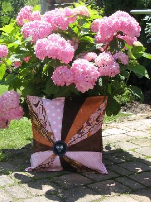 Meine Sommerhortensie blüht auch dieses Jahr wieder, als gäbe es kein morgen und das neue Kissen passt so gut dazu.