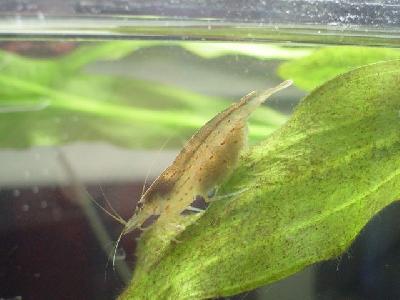 Ja, das ist so eine richtige kleine Garnele. Wir haben die Amanogarnelen, benannt nach ihrem "Finder", der mit Nachnamen Amano hieß/heißt. Stammen aus Japan, leben in Flüssen und "gebären" dort. Die Larven wandern dann ins Meer, entwickeln sich erst dort zu Garnelen und wandern wieder in den Fluß zurück und können nie wieder in Salzwasser leben.