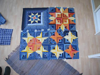 Danke schön Gabi, heute sind Deine Stoffe gekommen und so konnte es munter weiter gehen. Anbei eine "Stellprobe" für ein erstes Viertel: