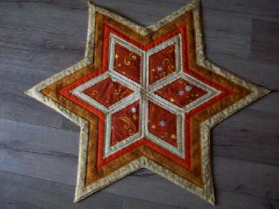 Gerade noch rechtzeitig fertig geworden! Meine Vorgabe war: Stern mit Zacken als Mitteldecke für einen runden Tisch, soll zu orangefarbenen Gardinen passen.