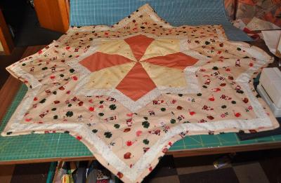 diese Tischdecke ist aus einer Patchwork Spezial 2007, diese Zeitschrift lag auch in meiner Kiste. Da ich den Stern vor Jahren schonmal nähte und er sehr gut ankam dachte, machst nen neuen in anderen Farben.