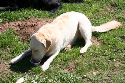 Und damit ihr mir glaubt, dass die Drei hier ordentlich ernährt werden - es gibt hier sogar Hundeeis. Neee, nicht, was ihr wieder denkt - pffft. Ich hab mich im letzten Sommer schon immer gewundert, mit wie wenig man die Hunde glücklich machen kann. Für jeden ein Becher Fruchtjoghurt für 24 Std. in den Tiefkühler und ab geht der Spaß