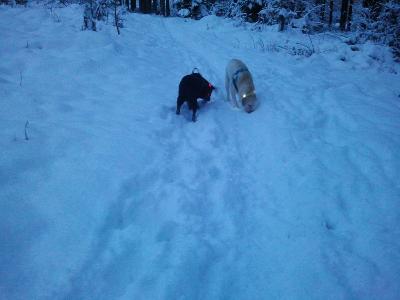 Den Jahreswechsel haben wir gut überstanden. Wir hatten Besuch von einem befreundeten Pärchen mit 3 weiteren Hunden und haben lecker Raccelette gemacht. Marnie hat das Geböller dieses Jahr unter dem Küchentisch ertragen. Sie hat zum ersten mal nicht geschlottert wie Espenlaub und ist nicht in den Keller abgewandert. Sie kriegt seit einigen Wochen Schüsslersalze zur Unterstützung des Seelchens und die scheinen Wirkung zu zeigen. Das neue Jahr hat hier ganz ruhig angefangen. Göga hatte noch Urlaub und war viel mit den Hunden unterwegs, die das natürlich klasse fanden. Wenn ich dann nach Feierabend nach Hause kam, war die Freude groß und den dann folgenden gemeinsamen Spaziergang haben alle genossen.