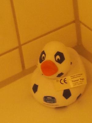 Ich bin vor lachen bald ins Klo gefallen ... (stellt Euch das Bild bitte mit weißen Fliesen und weißer Ente mit blauen Abzeichen vor ...).