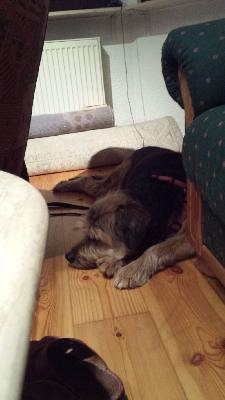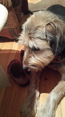 Die letzten 3 WEs waren wir bei meinen Eltern, das steckt Marnie gar nicht mehr gut weg. Da wohnen wir in der 3. Etage, meine Eltern können nicht mehr gut mit 2 so grossen Hunden umgehen, wir waren viel unterwegs - das ist zuviel Stress für Marnie. Leider liess es sich nicht vermeiden, also habe ich versucht, viel über unsere Rituale abzufangen. Das und viel Schlaf helfen ihr über so Situationen gut hinweg.