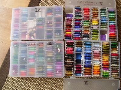 War mal, ne Zeit lang in den USA und dort wird auch viel gestickt und natürlich gepatcht, also hat Frau sich, bevor sie wieder nach good old Germany gezogen ist, noch reichlich eingedeckt, denn es war seeehr günstig dort, und die Boxen gab es eben auch dort.....nur deshalb.