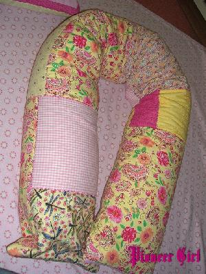 Gestern habe ich endlich einen neuen Bezug für unser Stillkissen in Angriff genommen, das von meiner Tochter immer noch gern zum Kuscheln und Schmusen genommen wird. Ich habe einige Stoffe genommen, aus denen sie z.T. schon Kissen hat, so dass alles zusammen passt.