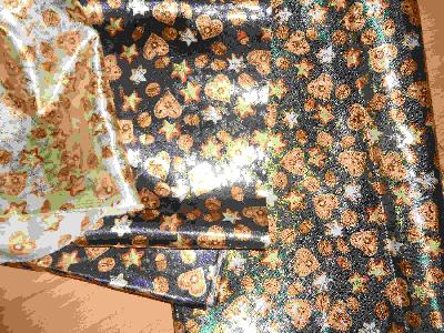 Es sind hochglänzende Stoffe, keine Patchworkstoffe, Farben leider schlecht zu erkennen.
