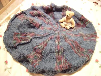 Da er leider aber mindestens 4 x so groß wie eine Katze ist, müßte ich wohl ein Bundeswehrzelt stricken, damit das Endergebnis so groß wird, dass er da noch reinpaßt.  |