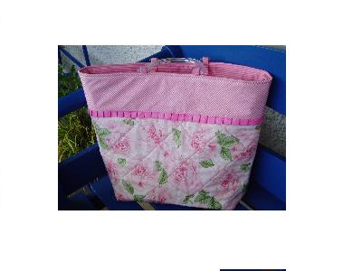 Das Muster der Tasche war mit anderen Stoffen genäht - mit roten Rosen auf beigem Grund und entsprechend andere Stoffen. Die sah dann gleich ganz anders aus obwohl der gleiche Schnitt.