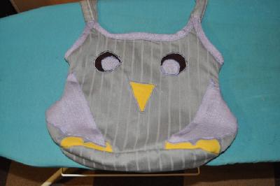 sah einen Beutel mit Eulenstoff und dachte mir, warum nicht mal ne Eulenform als Tasche probieren. Heute Nachmittag setzte ich mich hin und zeichnete den Schnitt und fing an. Hier nun das Ergebnis.