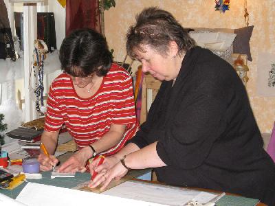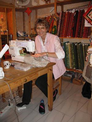 die Tasche habe ich an einem sog. "Tag der tasche" in meinem Lieblingsladen genäht. "Tag der Tasche" bedeutet: Wir treffen uns um 10.00 Uhr und nähen bis gegen 18.00 Uhr. jede sucht sich eine Tasche aus dem Angebot der Kursleiterin aus. Das ist immer total schön. Der letzte "Tag der Tasche" war Ende Januar an meinem Geburtstag. Somit hatte ich einen superschönen Geburtstag. Die Tasche ist noch nicht ganz fertig. Ich muss nochmal was auftrennen und die Verzieruung mit den Perlen ist noch nicht fertig. Hier mal eindruck für euch, wie es so aussieht am "Tag der Tasche" (auf dem letzten Foto könnt ihr mich sehen):