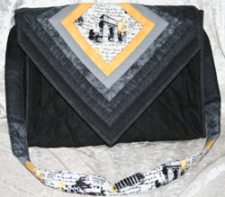 In diese nach der Lege-Klebetechnik genähte Tasche passt eine Menge hinein. Sie läßt sich oben mit einem Reißverschluß verschließen.