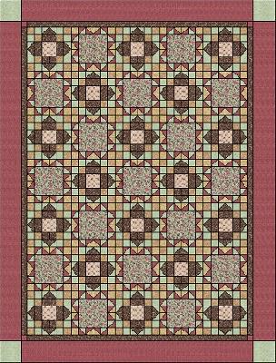 Jahrelang habe ich diese Stoffe gesammelt und wusste für wen. Jetzt sind wir im Jubiläumsjahr angekommen und sie bekommt einen Rosenquilt von mir. Bis August habe ich Zeit. Der Quilt soll 150x200 werden und somit habe ich erst mal meine "simple Software" Quiltpro6 dazu durchforstet. Selbst diese Software hat Möglichkeiten die sich in einem Leben nicht alle umsetzen lassen. Ich wollte Blöcke mit möglichst viel Fläche um die herrlichen Rosenstoffe ins rechte Licht zu setzen. Aus der Blockdatei habe ich den Quadre Foils und der Five Patch Frame ist sogar von der Block of the Day Aktion.