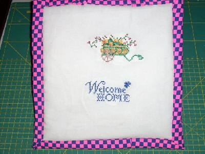 ein kleines Türschild heute gestickt und dann wie einen Miniquilt fertig gemacht.