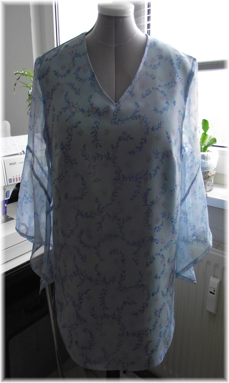 Aber hier ist nun meine Tunika aus hellblauen Chiffon und Saite.