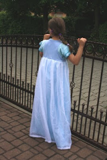 Die Cousine bekam für ihr Elsa-Kleid ein Mieder aus Material-Mix-Stoff,
