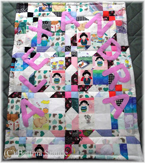 Ich mag meist immer nur Top's nähen. Die Fertigstellung folgt meist später, so wie jetzt. Mein Disappearing Nine Page Top ist zur Decke geworden als Geschenk für eine Freundin und deren kleine Alexandra. Den Nine Page selber habe ich aus Resten von Kinderstoffen gemacht. Ist auch eine schöne Art der Resteverwertung.