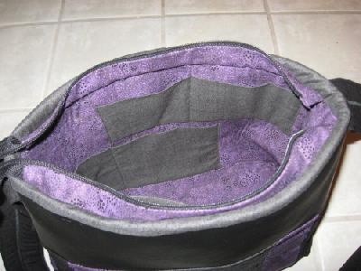 Geflucht und geschwitzt hab ich, jawohl, denn das Oberteil ist aus Kunstleder, der Reissverschluss im Binding eingenäht und die Henkel seitlich durch 3 Lagen Stoff, 3 Lagen Vlies und 1 Lage Kunstleder festgenäht. Etwas, was meine kleine Janome-Reisenähmaschine wirklich nur unter Quälerei zustande gebracht hat.