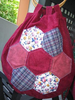 Das Hexagonmotiv ist von Hand genäht, mit Vlies hinterlegt und dann appliziert.