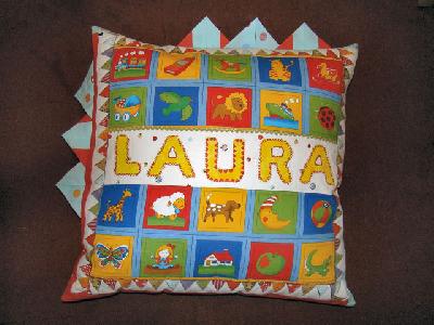 Da iwrd sich die kleine Laura aber freuen, ein richtig süßes buntes Kinderkissen.