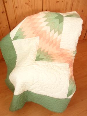 Zu meiner Schande muss ich gestehen, dass ich noch nie in Lancaster County war, wo sich die Amish hier in Pennsylvania wohl konzentrieren. Aber vor ca. 15 Jahren, als wir hier mal zu Besuch waren, haben wir einen handgenaehten Amish Quilt gekauft, in wunderschoenem Lachs/Rosa, Gruen und Weiss. Habe den aus Angst, ihn zu beschmutzen, fast nie benutzt, der fristet sein Dasein also groesstenteils im Schrank. Schnief ...