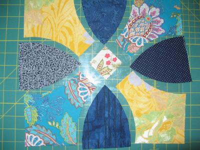 1. Etappenziel - 12 von 48 Blocks genäht - davon 6 auch gleich zusammen - war zu neugierig auf das fertige Musterbild, konnt's nicht abwarten