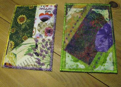 So, jetzt hab ich euch genug gequält. Es hat mir riesigen Spaß bereitet, so kreativ zu sein. Lieben Dank auch an diejenigen, in dessen Restkiste ich graben durfte. Dadurch sind ganz andere Stoffreste in meinem Fundus gelandet und bereichern jetzt die Karten!
