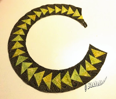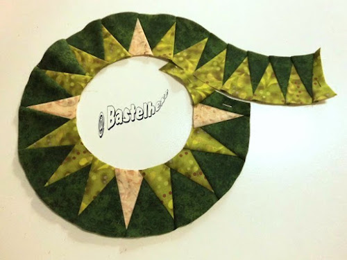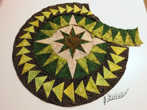 Als nächstes kommt dann der "Flying Geese-Rand" dran. Spannend wird es dann, wenn ich erst die beiden Ränder und zum Schluß den Innenkreis zusammennähen muß. Ich weiß zwar noch nicht so recht wie, aber irgendwie muß es schon gehen.  _________________ Liebe Grüße