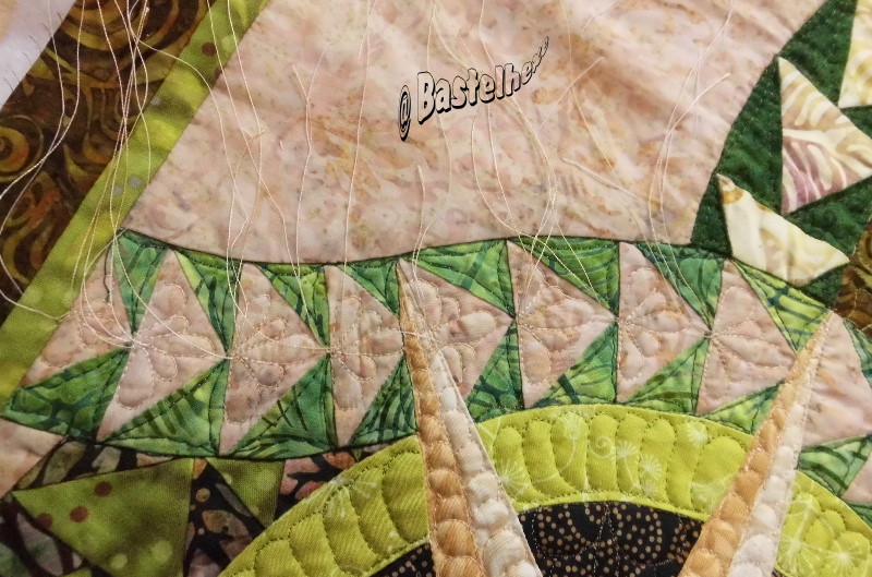 Der Anfang von der Flying Geese Girlande quer durch das ganze Wandbild ist nun auch gequiltet. Am Wochenende geht es damit weiter.