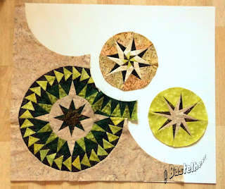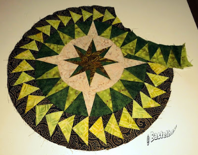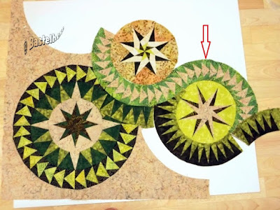 Es hat einen richtigen Ruck bei meinem Wandquilt gemacht. Kreis "A" und seine beiden Außenränder sind zusammengenäht. Fragt mich aber bitte nicht, wie oft ich das Verbindungsstück (rechts oben) abgetrennt und wieder angenäht habe bis es richtig saß - garantiert unzählige Male.