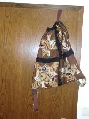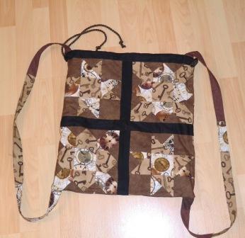 Die Timebag (ist ein einfacher Beutel zum Zuziehen oben und zum tragen wie einen Rucksack; Vorder und Rückseite sehen gleich aus) :