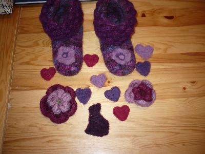 Wunderschöne Filzpantöffelchen, beerenfarbig.