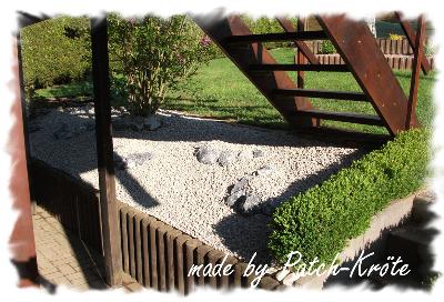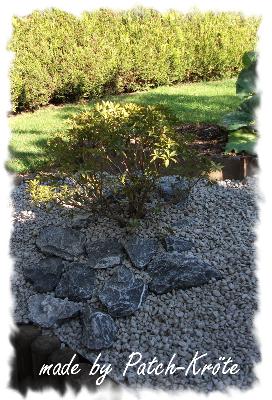 2. Grund: auch das bisher vernachlässigte Beet, dass an die Terrasse angrenzt, wurde umgestaltet. Gestrüpp wurde entfernt (meine Mama nennt es liebevoll Bodendecker), 800 Kilo Splitt kamen drauf