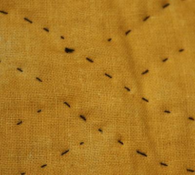 -Wie male ich auf die dunklen Stoffe Hilfslinien? Der Strich von meinem weißen Buntstift war einfach nicht zu sehen. Der Patchworkstoff schien zu glatt. Auf anderen dunklen Stoffen ging das bislang gut.