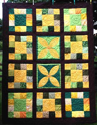 Ich mag gelb und braun und gruen. Das sind glueckliche Farben und sie passen gut zusammen. Toll dass du so viel bei der Sache gelernt hast. Ich find der Quilt sieht super aus! _________________ Liebe sonnige Gruesse