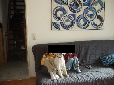ich denke daran, einen Überwurf für unsere Couch zu machen. Auf dem Bild erkennt Ihr, daß über der Couch mein NYB hängt, auf der Couch das gelieselte Kissen aus den Reststoffen des NYB. Hier nun meine Fragen und ich bitte um Anregungen und Ideen: