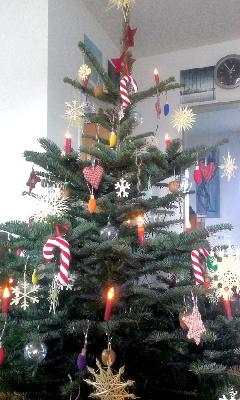 Konnten den Baum doch erst gestern holen. Heute morgen haben wir ihr aufgestellt und geschmückt.